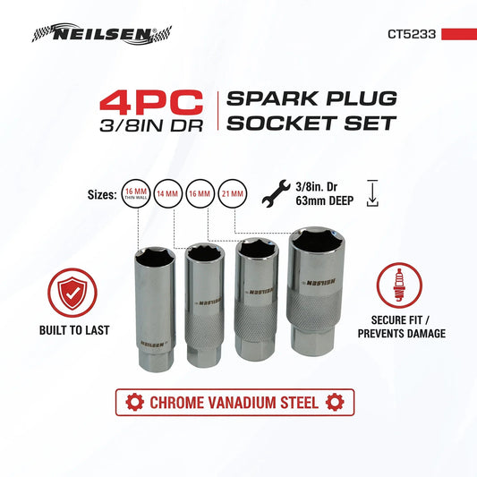 CT5233 - 4pc 3/8in Dr Spark Plug Socket Set Thin Wall