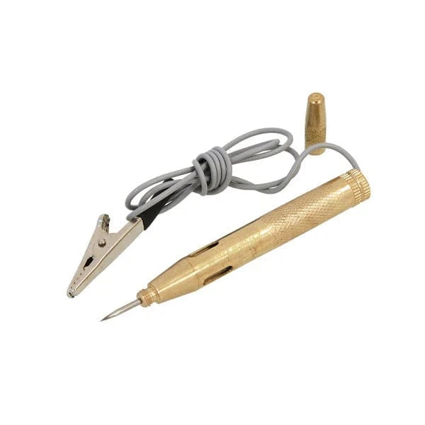 The CT3266 is designed with a robust, knurled metal body and includes a handy test light. Its probe tip is shielded by a protective screw cap to safeguard against damage and ensure precise measurements. The tester lights up when voltage is detected, providing a straightforward way to check if your battery is fully charged or requires charging.